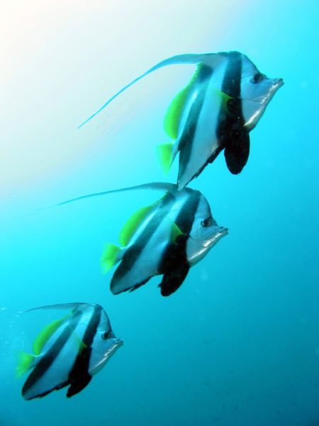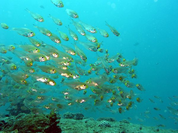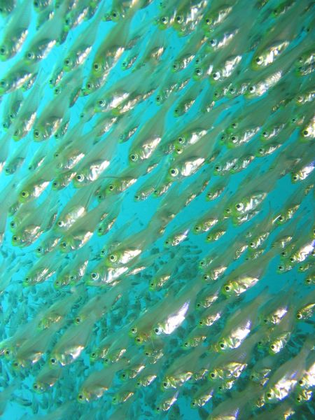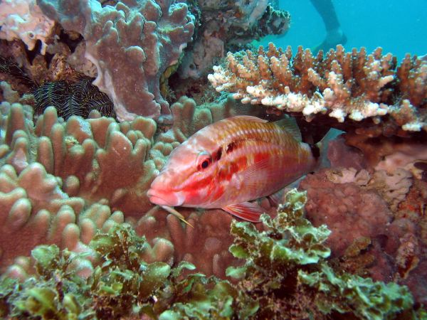 Was als zweites auffällt, ist die unglaubliche Anzahl und Vielfalt von Fischen und anderen Lebewesen wie Seesterne und Schnecken. Manchmal schwamm man förmlich durch Fisch-Suppe. Es erinnerte mich ganz an das Tauchen an der SS Yongala.