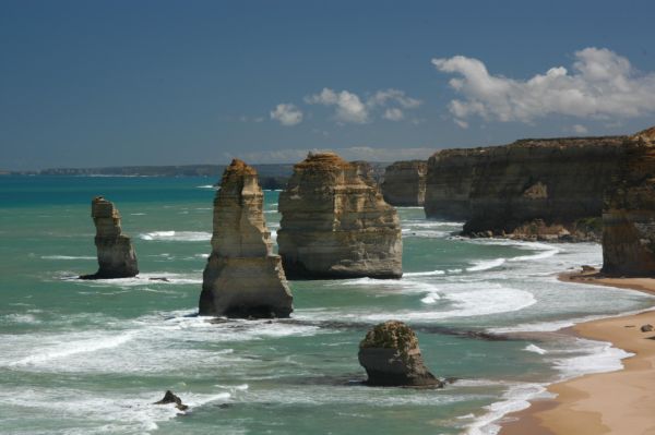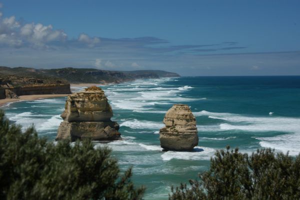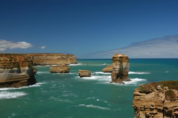 Im Nirgendwo zwischen Melbourne und Adelaide ein paar Meter von der Küste entfernt, stehen ein paar riesige Sandstein-Blöcke im Meer. Während Tausenden von Jahren hat sich das Meer durch den Sandstein gefressen und hat dabei diese Kolosse gebildet. Die einzelnen Blöcke sind vielleicht 15 - 20 Meter hoch und haben einen Durchmesser von 8 - 25 Meter.