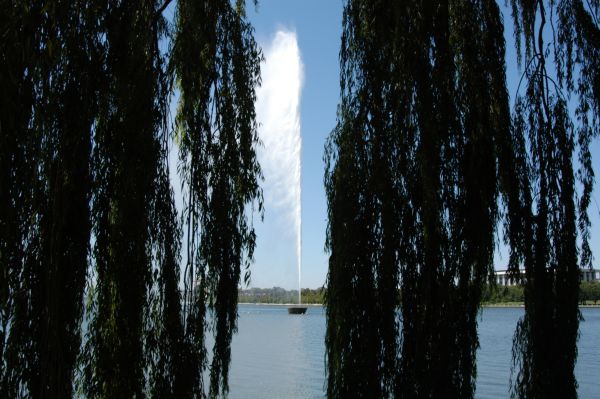 Die Stadt wurde auf dem Reissbrett entworfen und so sind Strassen, Plätze und Pärke symmetrisch angelegt. Es sieht aus, als sei die ganze Stadt an der Achse zwischen Parlament House und War Memorial gespiegelt worden. Auffallend sind besonders die zahlreichen, unendlich grossen Parks, die mit Statuen und Denkmälern übersät sind. In der Mitte der Stadt erstreckt sich ein See, der natürlich auch künstlich angelegt wurde und in diesem See gibt es einen Jet d'eau, der angeblich 134 m hoch sein soll. Ich hatte aber der Eindruck, dass er die 50 m-Marke nicht übertrifft.
