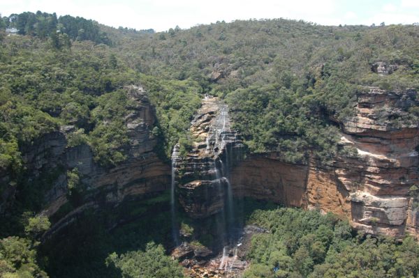 28. - 29. Januar 2006 - Etwa eine Auto-Stunde vom Zentrum von Sydney entfernt, erheben sich die Blue Mountains. Gut, für Schweizer Verhältnisse sind es eher Hügel als Berge. Der höchste Punkt liegt gerade mal 1'100 m über Meer. Ursprünglich existierte nur ein riesiges Plateau. Aber während Millionen von Jahren haben Bäche und Flüsse tiefe Canyons in den Sandstein gefressen.