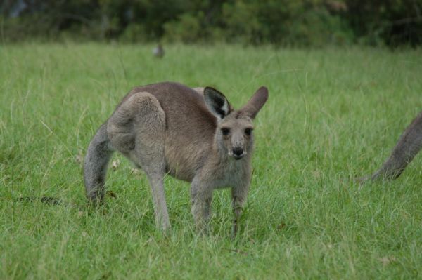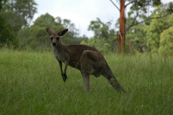 Ich habe eine 2-Tages-Tour gebucht. Am ersten Tag fuhren wir kreuz und quer durch die Blue Mountains. Der erste Stopp war einem speziellen Platz, wo es gutes Gras hat und man deshalb regelmässig Kängurus antrifft. An diesem Morgen waren sieben Tiere da. Weil es immer Menschen in diesem Gebiet hat, sind die Kängurus ziemlich zahm, so dass man ohne Probleme an sie herankommt.